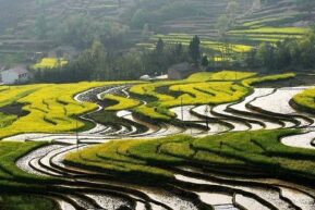 福建省厦門市の街中や公園、コミュニティで、「フイリソシンカ」が、次々と開花し、美しくロマンチックな風景を織りなしている。