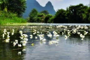 4月23日、雲南省昆明市dian池の草海南部にある大泊口水域では、雲南固有の水生植物・海菜花(学名・Ottelia acuminata)が、美しい花を咲かせていた。