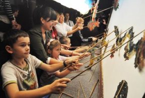 同校の児童約200人が、主題に沿ったオリジナル作品を作り上げて展示したほか、催し会場でも児童たちが絵画や粘土作品など様々な表現方法を用いて作り上げた思い付き満載の「海の家」を発表した。