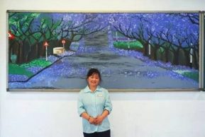 • 女性清掃員の黒板アート、絵ハガキ作成し慈善バザーに出品も